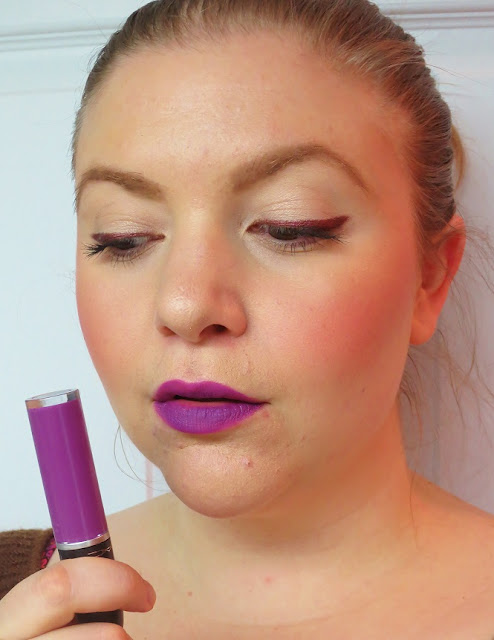 Eye Shadow: (all from the Too Faced Sugar Pop Eye Shadow Palette): Macaron (on inner third of the lid), Bubblegum (on centre of the lid), Sugared Violet (on outer third of the lid), Malted Milk Ball (blended in the crease), Blue Raspberry (along lower lash line), Blackberry (as liner along lower lash line), Strawberry Ice (below the inner portions of the brows), Sweet & Spicy and Peach Fuzz (mixed together as a highlight on the brow bone and inner corners of the eye).